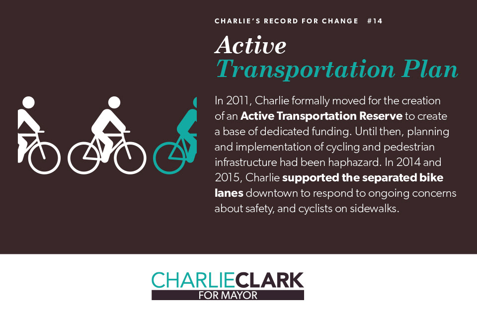A series of infographics outlining some of Charlie's accomplishments during his time on Saskatoon City Council. The series was posted on social media over the last weeks of the campaign.