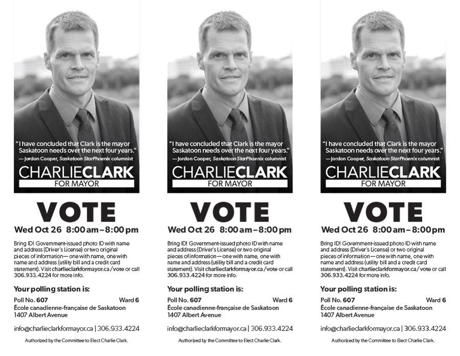 Flyers pointing voters to their local polls, given out throughout the city on Saskatoon's 2016 municipal election day.